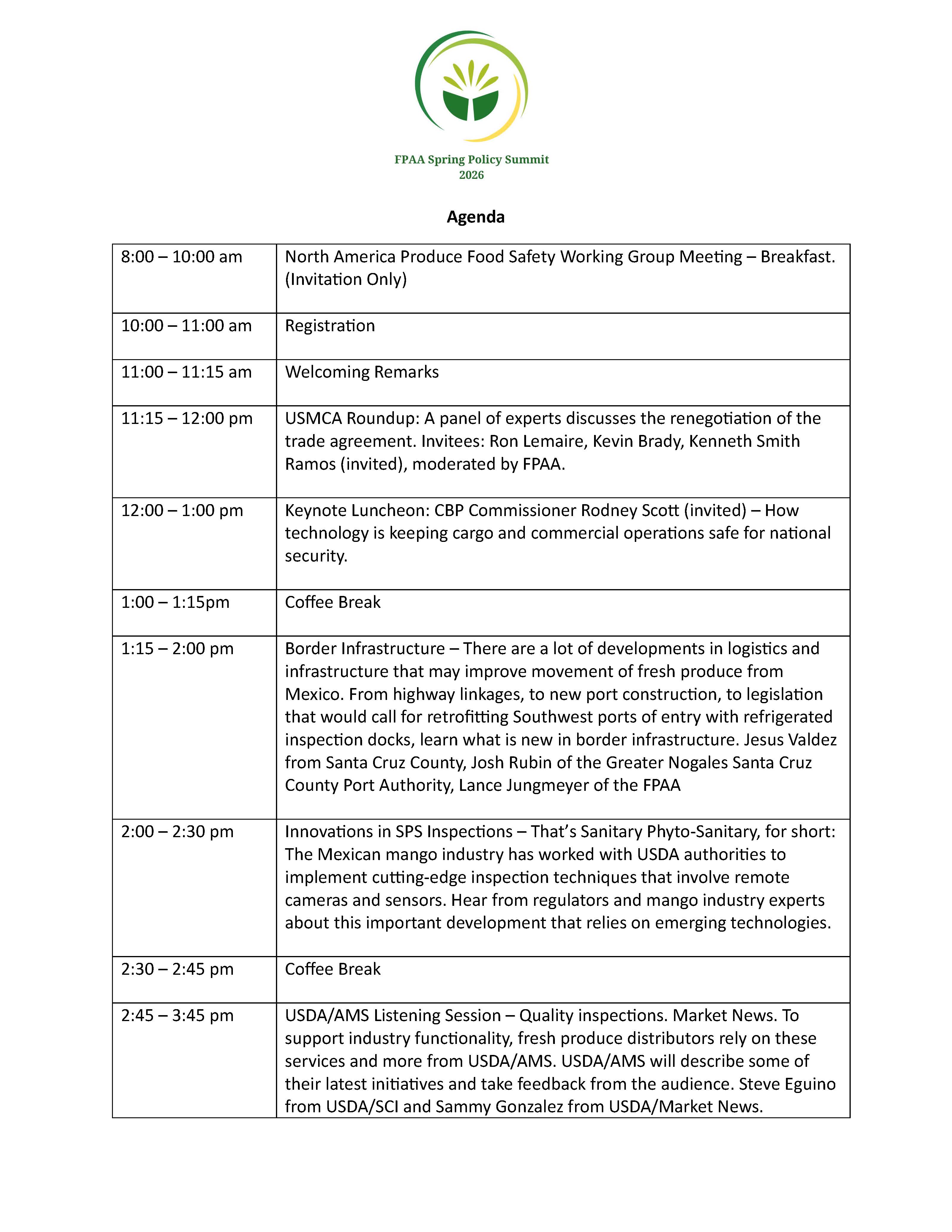 (Tubac, Arizona) - The Fresh Produce Association of the Americas (FPAA) will once again convene industry and government leadership at its Annual Spring Policy Summit, where members and stakeholders [...]